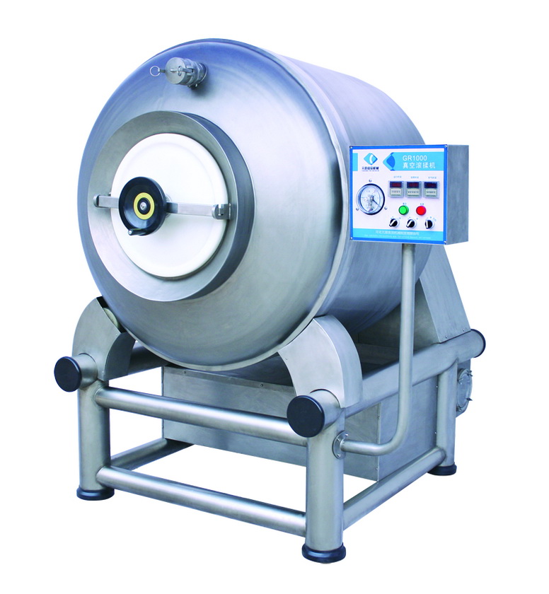 Vacuum Tumbler is in a vacuum state, the use of physical impact principle, the meat up and down in the drum turning, hit each other, beating, reaching massage, pickled role, the meat salted evenly meat adhesive products elasticity. Tumbler, massage can flesh protein is broken down into water-soluble protein, easily absorbed by the body, at the same time make add material (starch) and body protein the mutual fusion to reach the meat is tender, taste good, production rate.