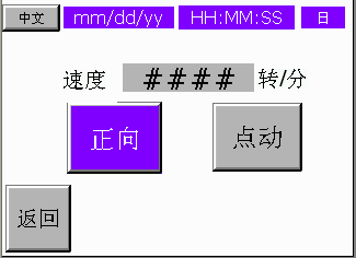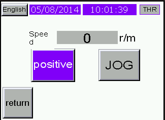 Press “JOG”button,the motor will rotate as setting speed ,setting direction,it will stop if not press ,rotate speed will setting at this Page,this speed is the motor Debugging speed,it is differ with the former screen working speed.