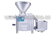 This family of pneumatic Quantitative Stuffer is designed with integrated circuit for its control, featuring button-press operation, suitable for the stuffing of minced meat and small meat slice. The quantitative function of this Stuffer is rather precise, with a deviation for minced meat of only ±2g, while the deviation for meat slice becomes slightly larger. The Filler has the advantages of low faults, high productivity and efficiency. By using it systematically with the dual clipper, you can manage your production activity in full automation; this Pneumatic Filler will absolutely function as an ideal equipment for meat processing of various types. [More]