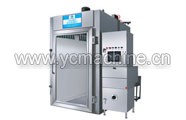 YC Mechanism bacon Smoke house is completely constructed of stainless steel and can be easily cleaned. The standard smokehouse, air is circulated 14 times per minute with a specially design circulating fan. A specially designed mixing chamber enables you to combine low temperature and high temperature air, smoke and low pressure steam so that the product in the smokehouse can be perfectly processed.Ensures a uniformly cooked product with constant core temperatures and standardized smoked color. [More]