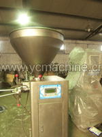 This Mechanical Stuffer is the Gen. 2nd improvement, built with the Japan YASKAWA servo motor as the drive system, the man-machine interface from Taiwan, and the Japan Mitsubishi PLC. It features the advantages of low faults, simple construction and easy maintenance. Meanwhile a precise quantitative function is available with this Stuffer, with a quantitative deviation for minced meat of only ±2g, while the deviation for meat splice is little bit larger. By using it systematically with the dual clipper, you can manage your production activity in full automation.