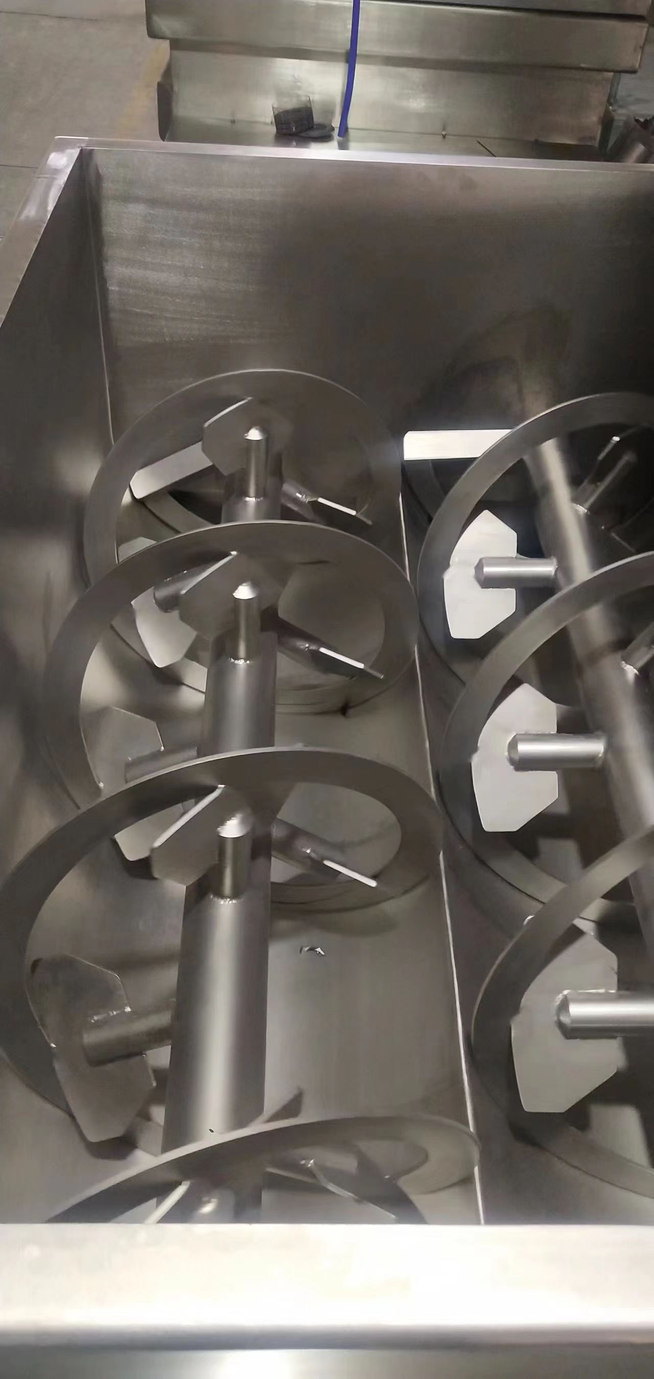 此機(jī)雙軸攪拌,可正反轉(zhuǎn)變換,大大的提高了攪拌速度及效果,加上可調(diào)真空度。使原料混合更加均勻,更能滿足產(chǎn)品工藝要求,并能將物料前期生產(chǎn)產(chǎn)生的氣泡抽走,對(duì)物料中的細(xì)菌進(jìn)行無氧滅菌,保持肉色鮮亮,提高保質(zhì)期,不繡鋼制造便于清洗,采用自動(dòng)控制開啟關(guān)閉箱蓋,出料蓋,方便省力。